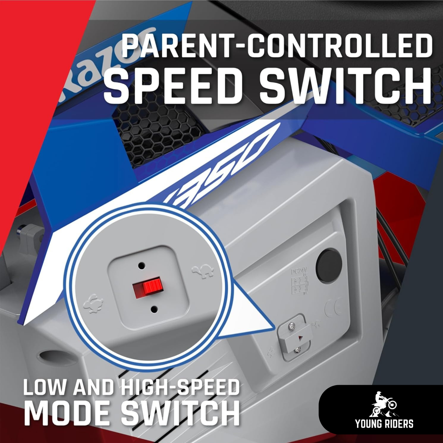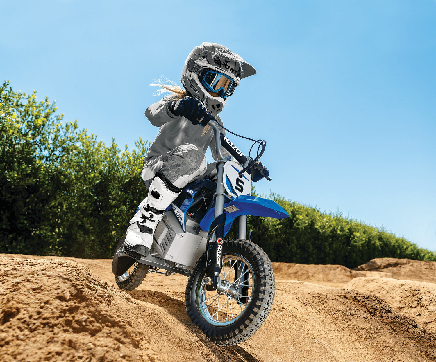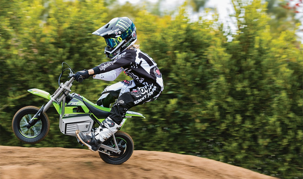 Yes. The MTX350™ features a smooth throttle, hand-operated brake, and durable off-road tires to keep young riders stable and controlled. It’s designed specifically for kids ages 8–13.